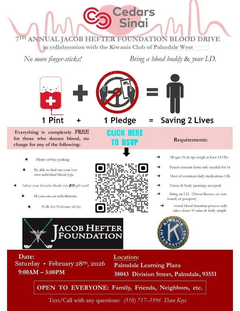 6TH Annual Jacob Hefter Foundation Blood Drive with Kiwanis Club of Palmdale West